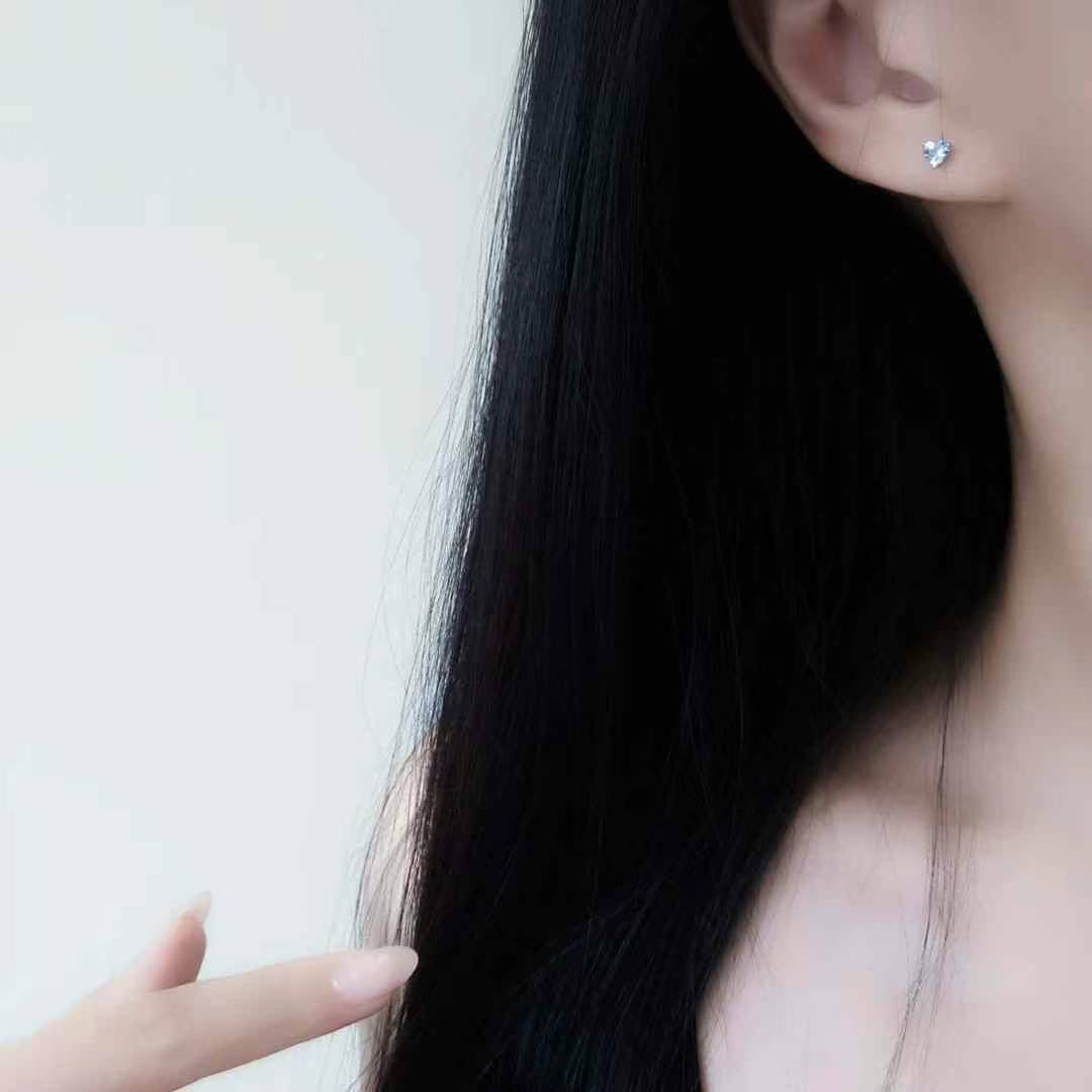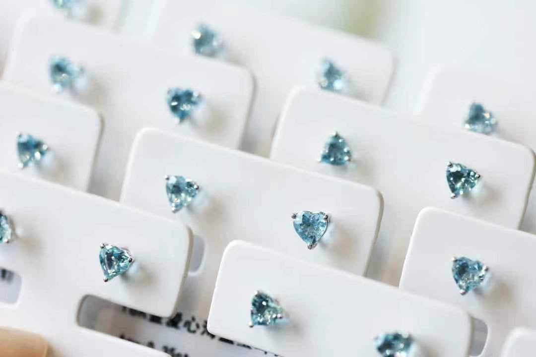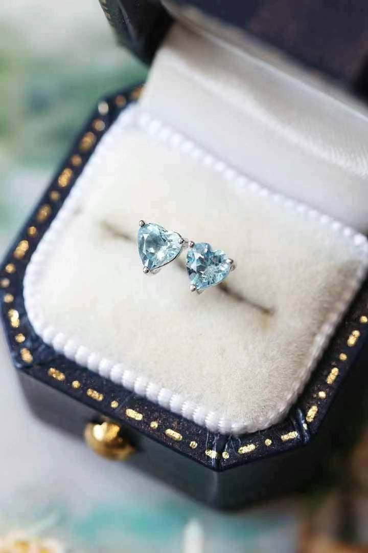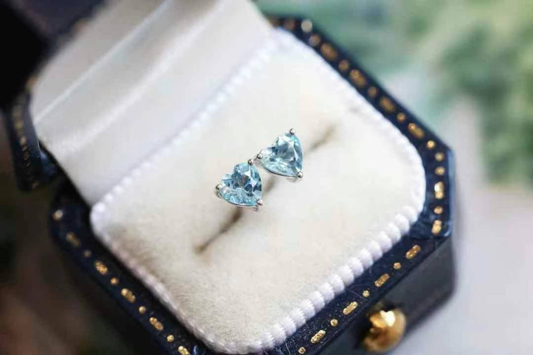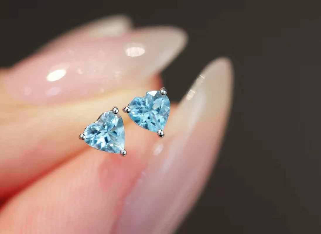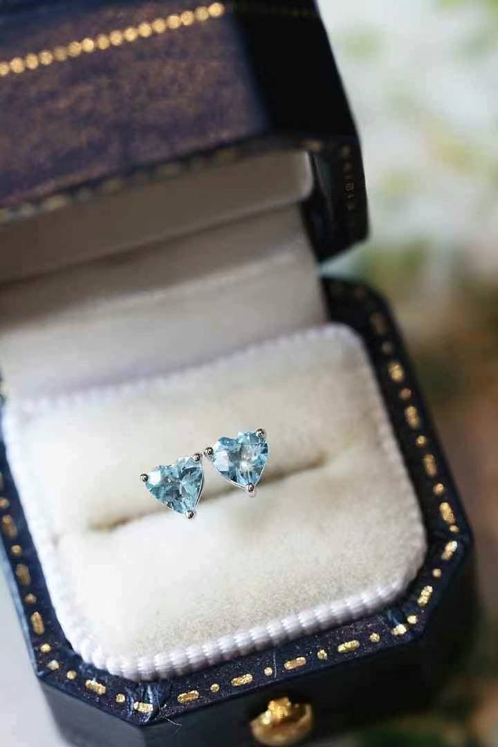 Cutie and super high quality Aquamarine Heart Stud Earrings, made with real 18k gold.